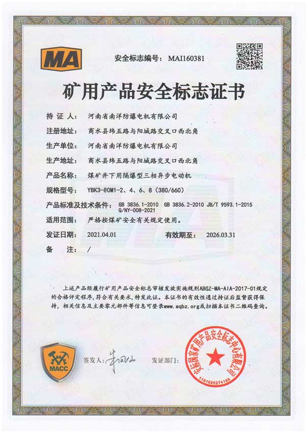 YBK3安標(biāo)證